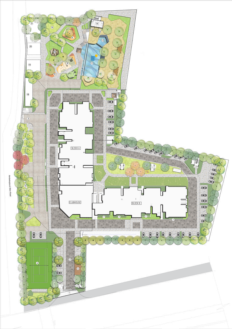 - Location: Budigere Cross, Old Madras Road, Bengaluru — strategically positioned between KR Puram and Whitefield, with excellent connectivity to IT hubs, schools, hospitals, and malls .
