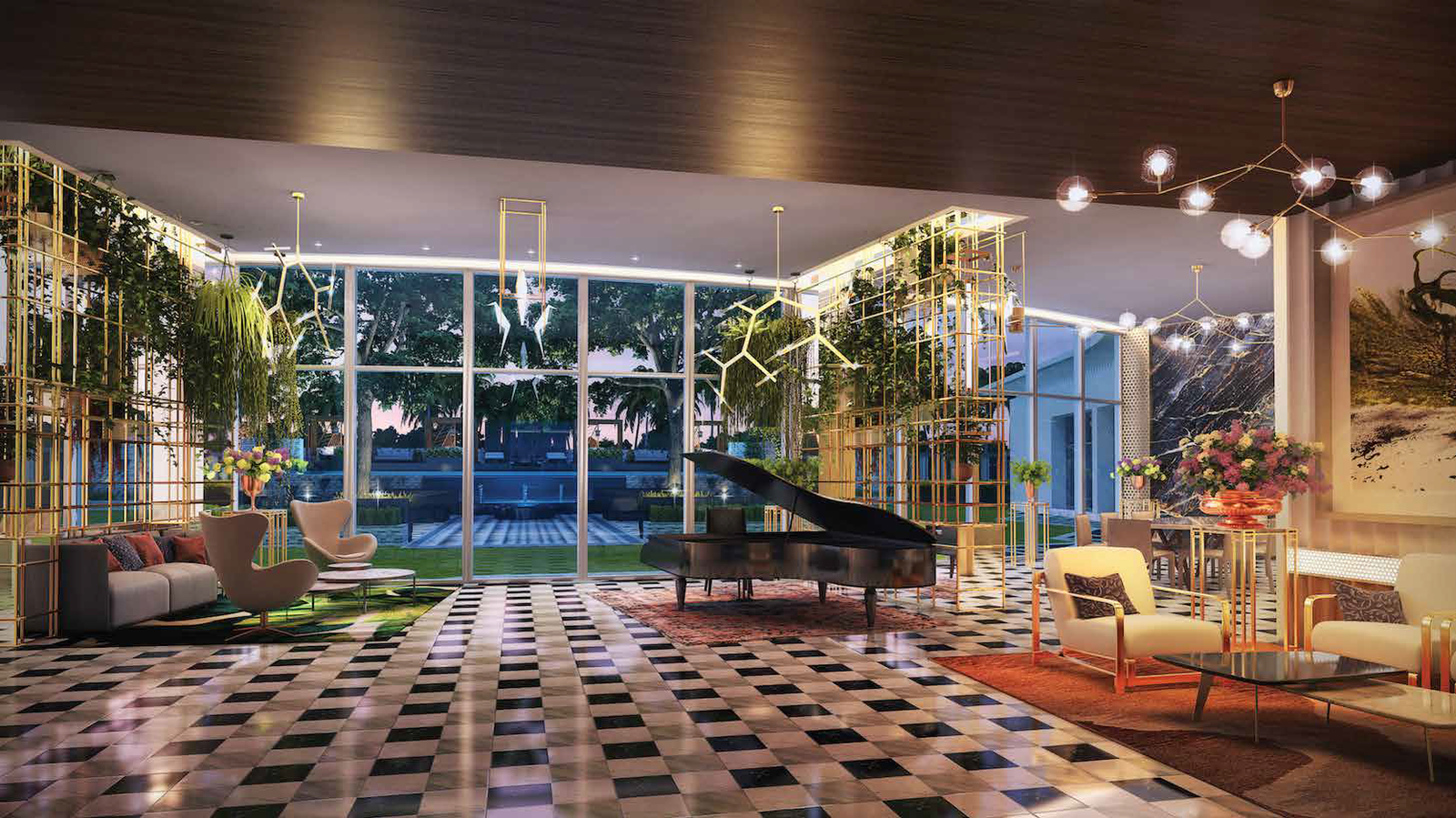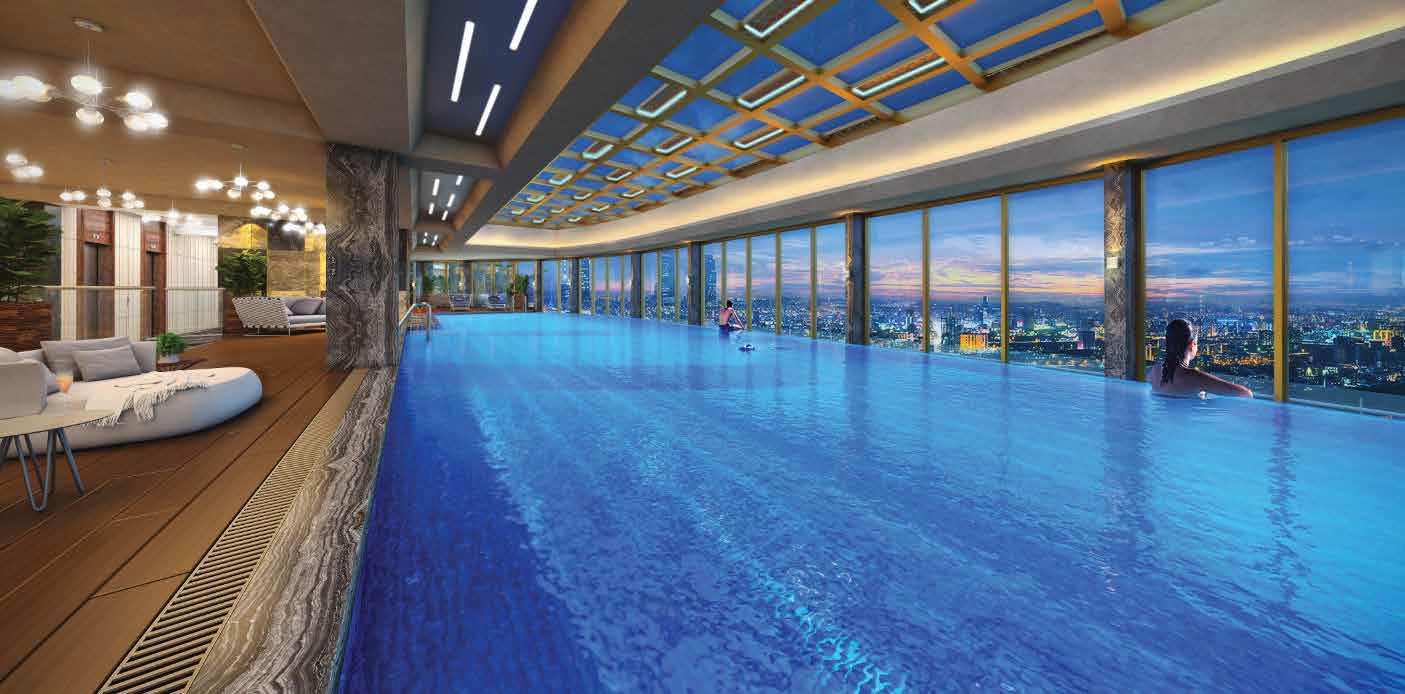 ✨ The Sky Club – Rooftop infinity pool, luxury spa, gourmet dining, cigar lounge, library, and private screening room.